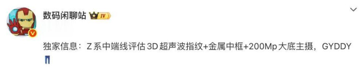 今天,博主@数码闲聊站 的一份爆料中提到,“独家书息:Z系中端线评估3D超声波指纹+金属中框+200Mp大底主摄,GYDDY”。