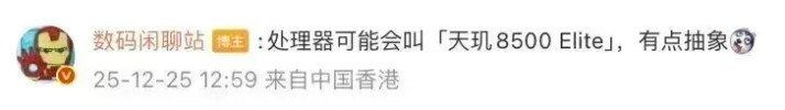 以往的音信中也提到过这款“天玑8500 Elite”芯片的信息。
